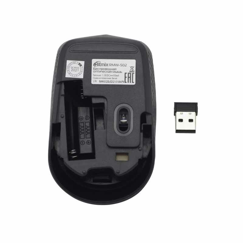 Мыши RITMIX Мышь Ritmix RMW-502, беспроводная, оптическая, 1200 dpi, 2xAAA(не в компл), USB, чёрная