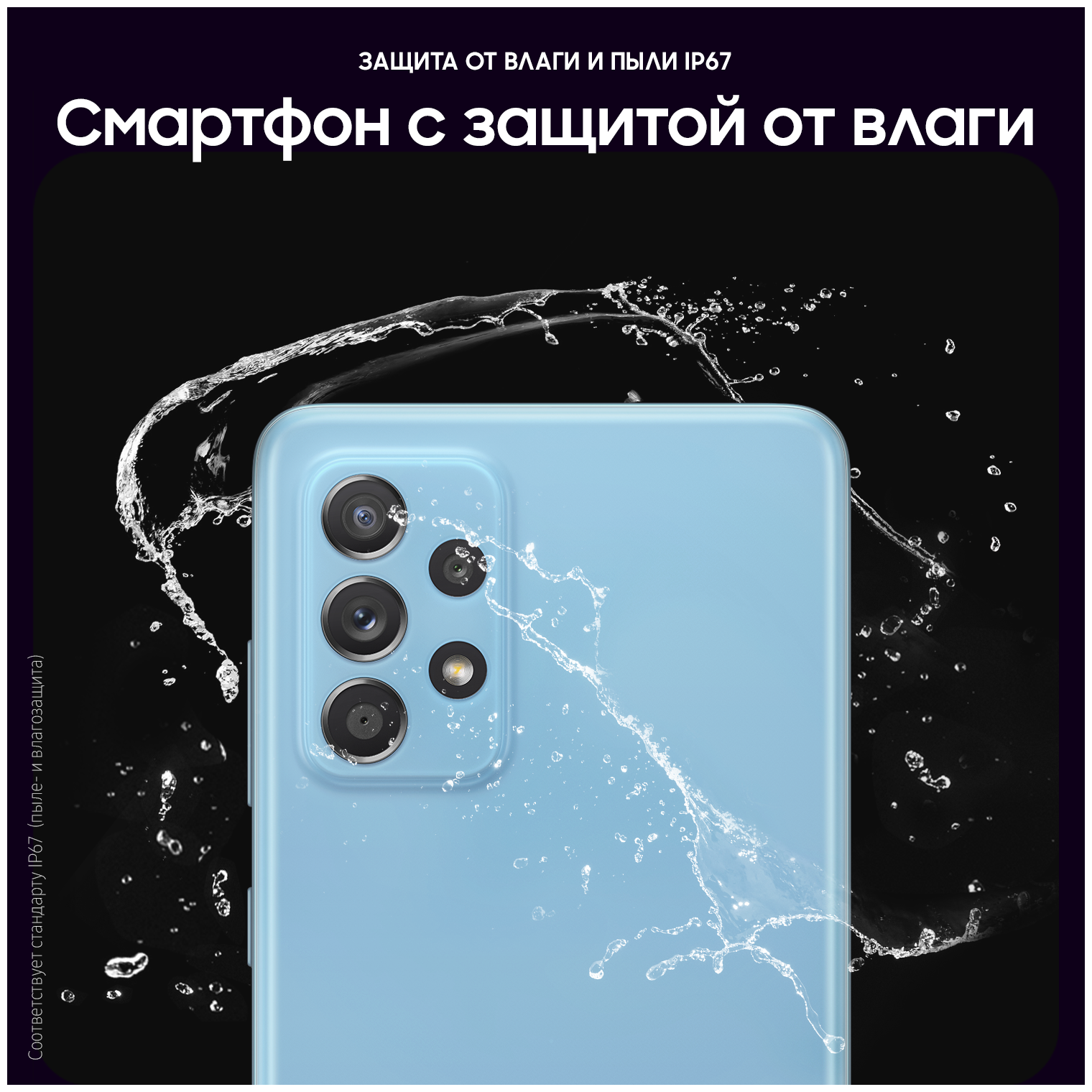 смартфон Samsung-Galaxy-A52-8-256G-Blue Пыле- и водонепроницаемость по стандарту IP67, многофункциональный NFC