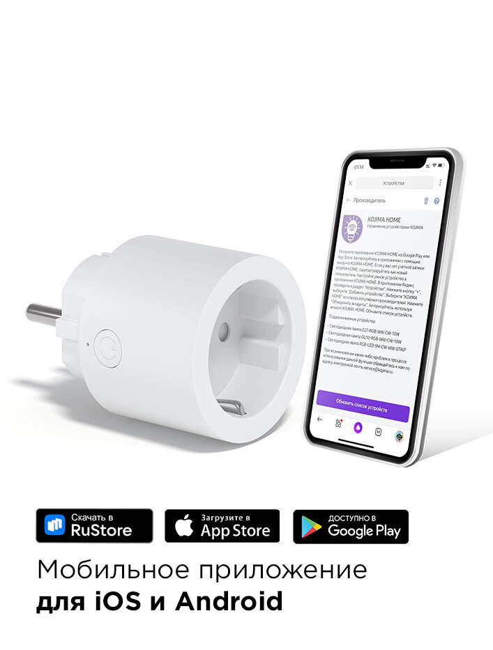 Цена для г. Курчатов. Умная Wi-Fi розетка с Яндекс Алисой и возможностью дистанционного управления от компании KOJIMA. Мобильное приложение адаптировано под большинство устройств IOS и ANDROID. Вы с легкостью сможете управлять устройством с помощью мобильного приложения, включать и выключать по расписанию с функцией таймер, управлять группой розеток одним нажатием, управлять с помощью голосового ассистента Яндекс Алисы или Google Assistant, наблюдать в режиме реального времени потребление электроэнергии. Магазины в городе Курчатов смотрите ниже