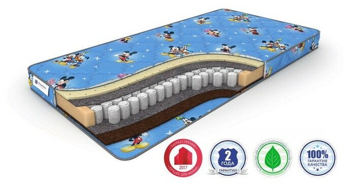 Цена для г. Курчатов. Детский матрас Dreamline Baby Latex TFK – детский пружинный матрас с разной жесткостью сторон: высокая/низкая. В качестве наполнителя матраса используются натуральные материалы: термовойлок, кокосовая койра, латекс (натуральный). В основе матраса лежит независимый пружинный блок TFK, количество пружин на квадратный метр – 256. Высота матраса 14 см. Чехол матраса не съемный материал чехла - бязь. Матрас поставляется в развернутом виде. Магазины в городе Курчатов смотрите ниже
