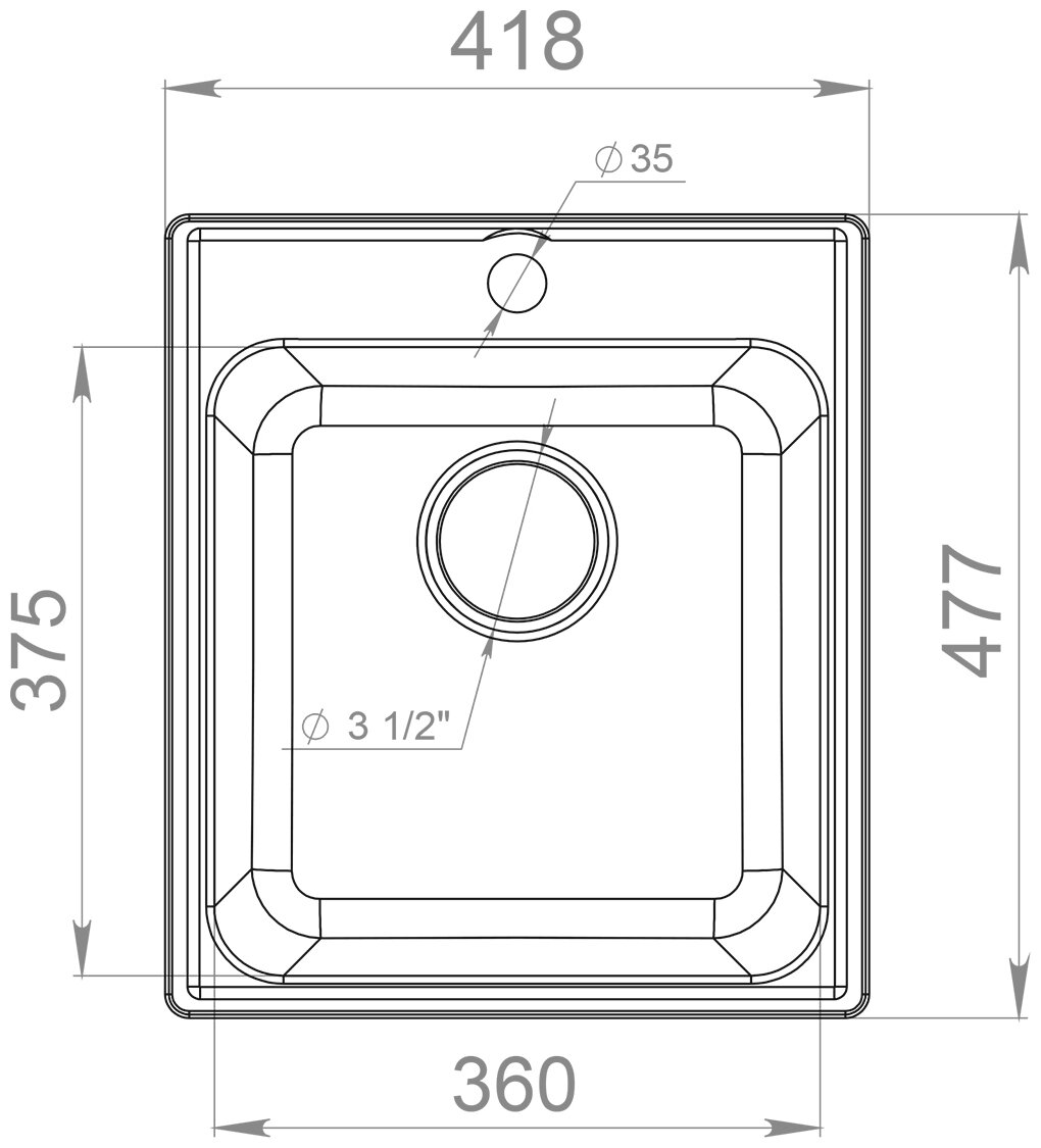 Мойка GRANFEST--QUARZ (ECO) - 17 стандарт 1 чаша 420*480 мм (серый) (без сифона)