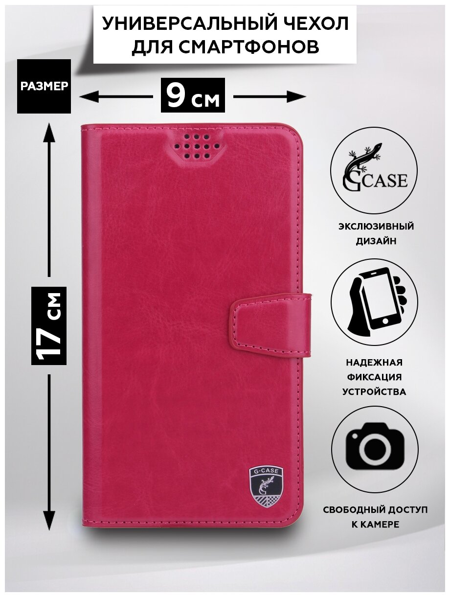 Универсальный чехол-книжка для смартфонов с размером до 17*9 см, G-Case Slim Premium XL, малиновый