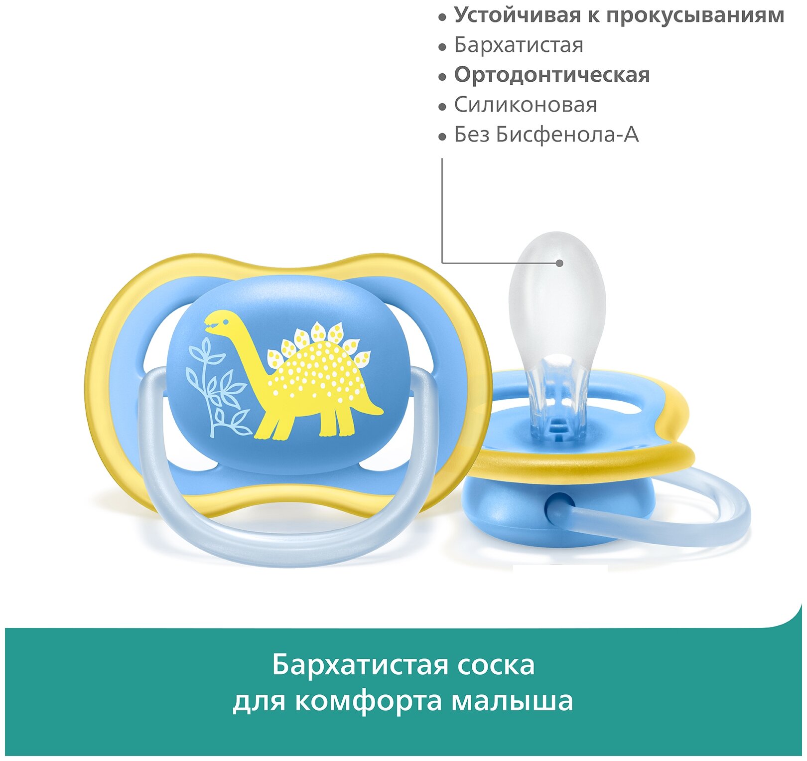 Детский товар Philips Пустышка 18+, Ultta Air, 2 шт, динозаврик и коала