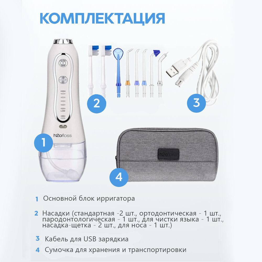 H2ofloss Ирригатор H2OFloss HF-6, белый электрические зубные щетки в Курчатов