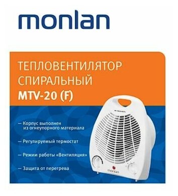 EDM Тепловентилятор спиральный электрический Monlan MTV-20 с механическим термостатом, 2000 Вт / Вентилятор тепловой тепловентиляторы в Курчатов