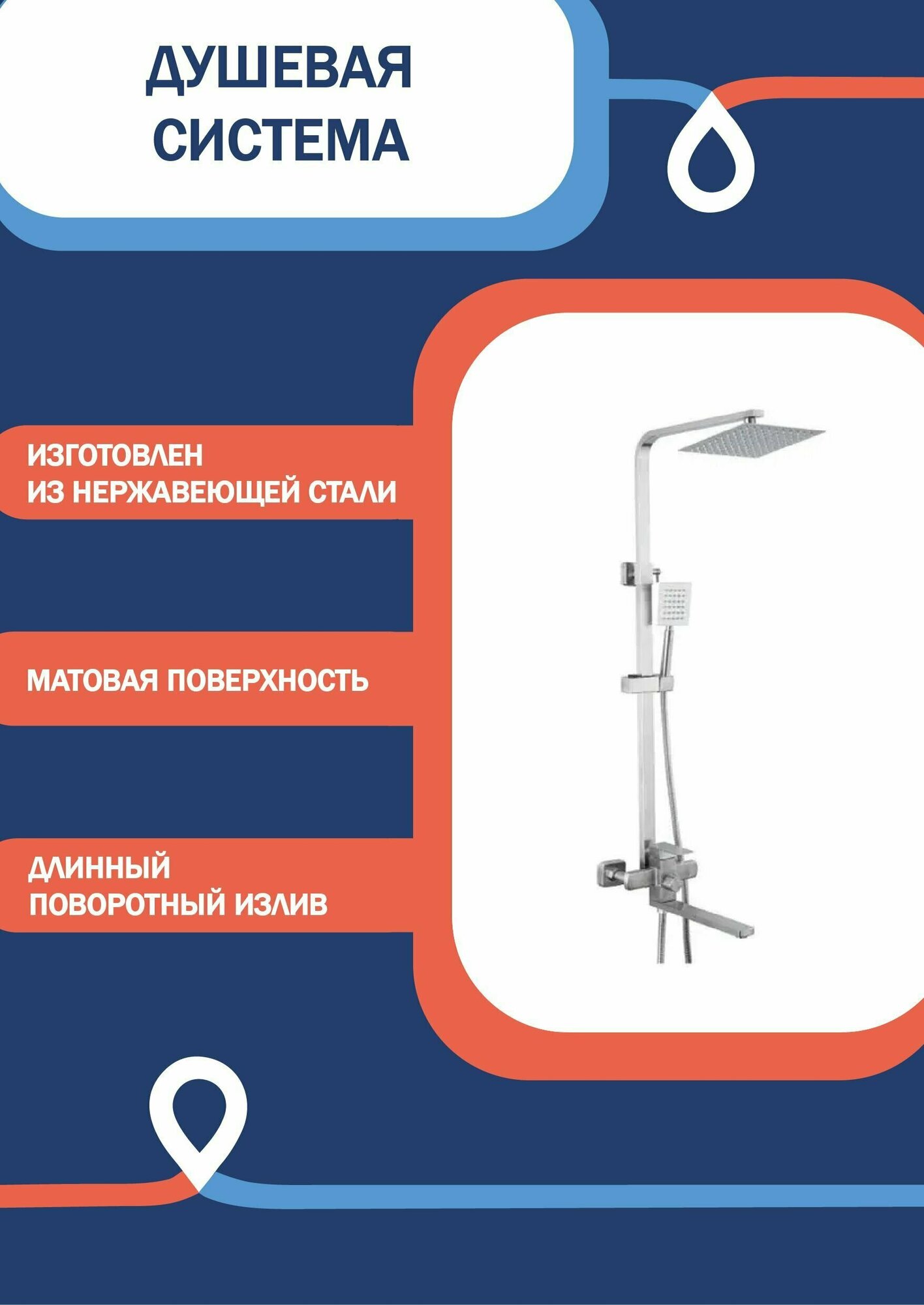 Душевая стойка Potato P35304S с поворотным изливом, картридж 35 мм, верхний душ, лейка на шланге, нержавеющая сталь