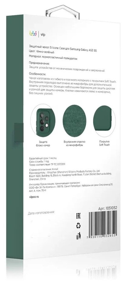Cyrill Чехол VLP Silicone case для Galaxy A53, тёмно-зелёный чехлы для мобильных телефонов в Курчатов