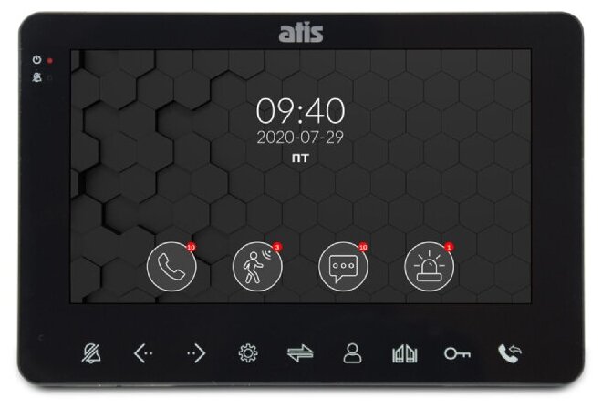 Видеодомофон Atis AD-780M Black с экраном 7" дюймов, поддержка microSD до 32Гб