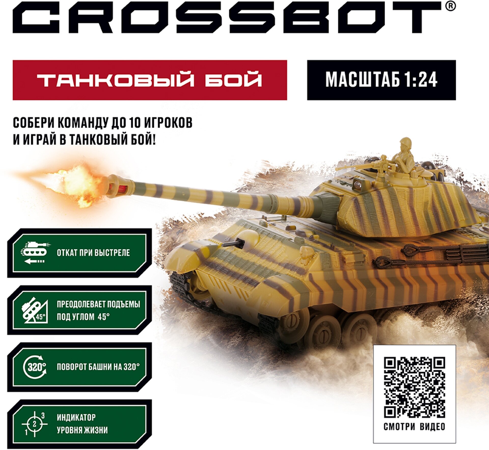 Танк на радиоуправлении CROSSBOT "KING TIGER", 1:24, функция ведения боя