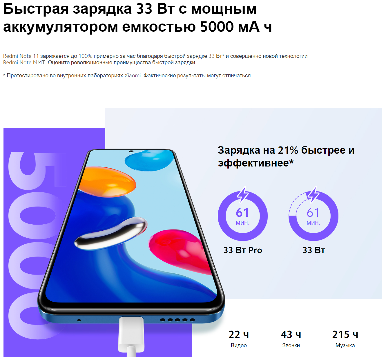 Смартфон Xiaomi Redmi Note 11 4GB+128GB Twilight Blue Ростест