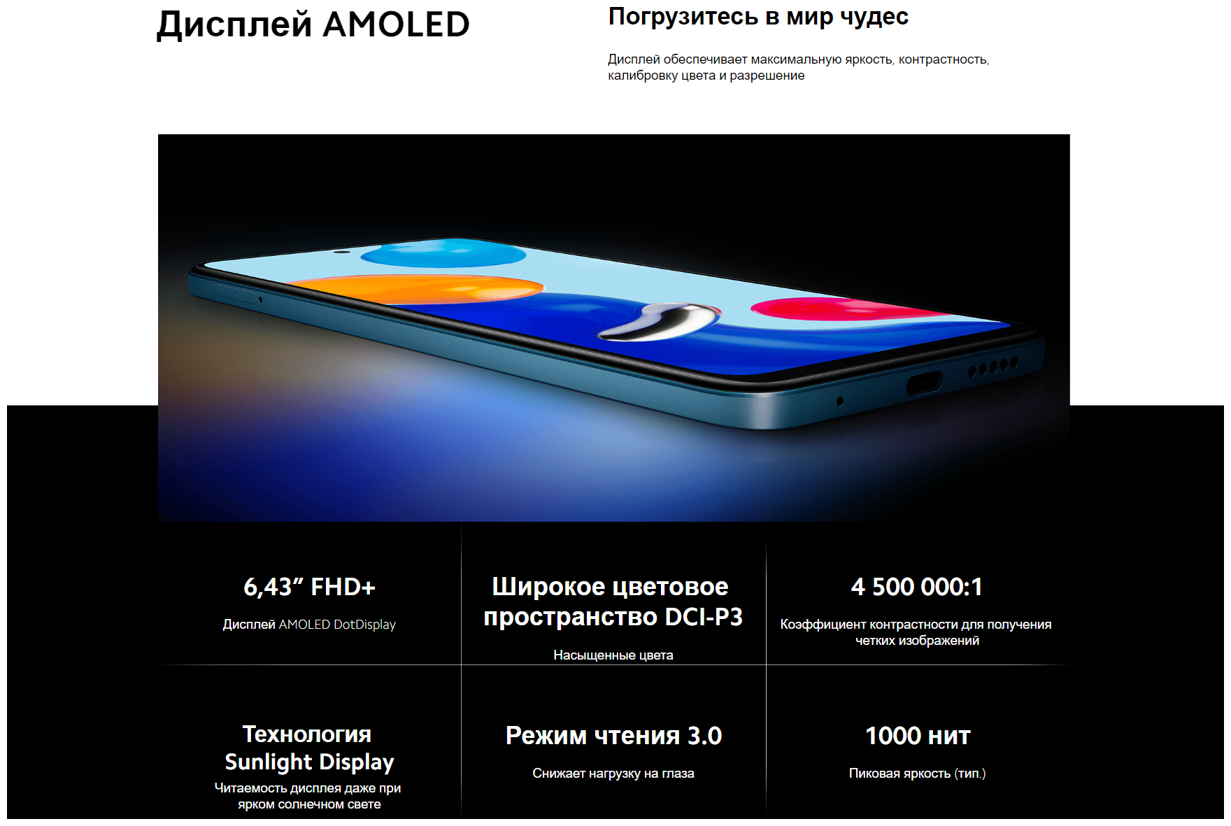 Смартфон Xiaomi Redmi Note 11 NFC 4 128Gb RU Mysterious Black