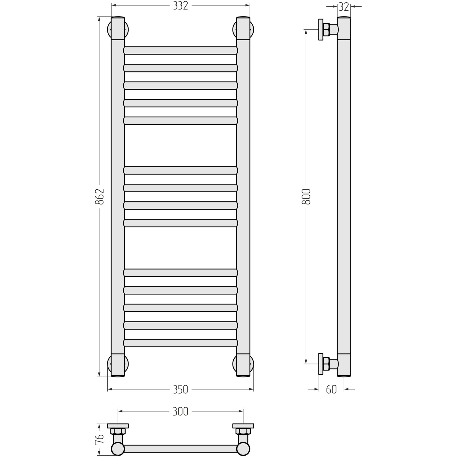 Полотенцесушитель водяной Сунержа Богема+ прямая 800x300, матовый белый 30-0220-8030