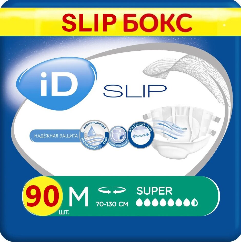 Подгузники для взрослых iD Slip Super, M, 7.5 капель, 70-130 см, 1 уп. по 30 шт.