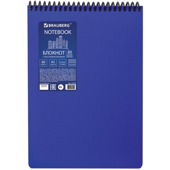 Kyiv Style Блокнот BRAUBERG А5, 80 листов, спираль пластиковая, обложка пластик, клетка, "Metropolis", синий, 110976 блокноты в Курчатов