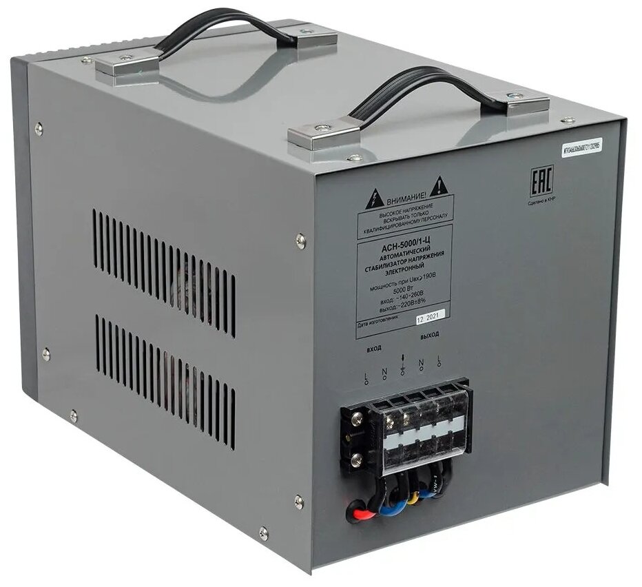Стабилизатор напряжения однофазный РЕСАНТА ACH-5000/1-Ц серый 5000 ВА 5000 Вт 375 мм 255 мм 305 мм 11.68 кг