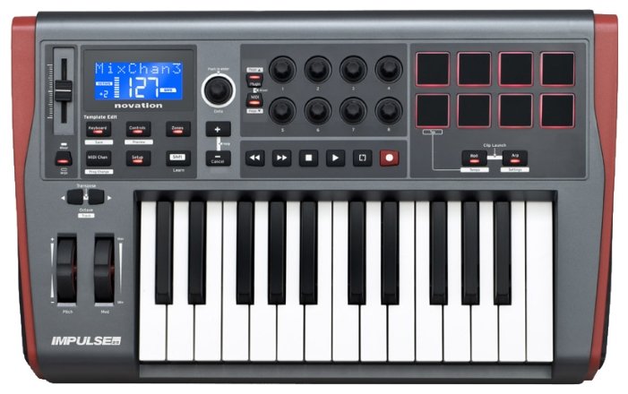 NOVATION Impulse 25 миди-клавиатура, 25 клавиш, 8 пэдов, Pitch/Mod контроллеры, питание по USB