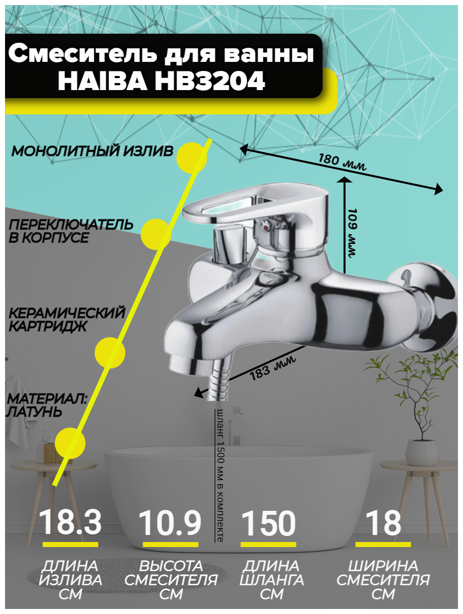 Haiba Смеситель для ванны Haiba HB3204, хром