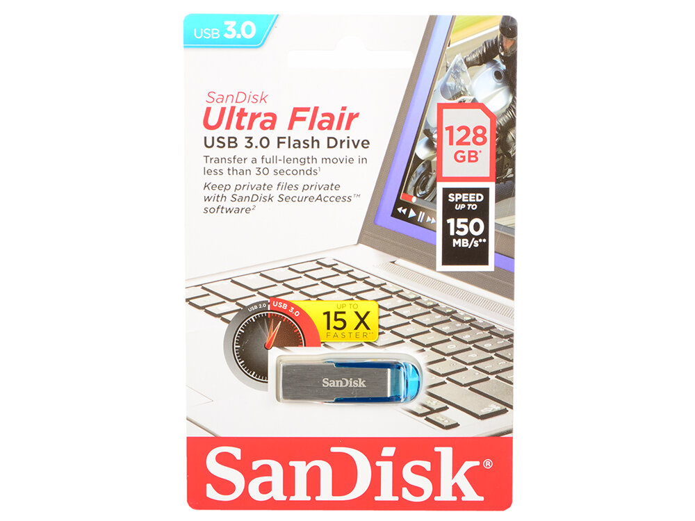 USB флешка Sandisk 128Gb Ultra Flair USB 3.0 (150/25 Mb/s)