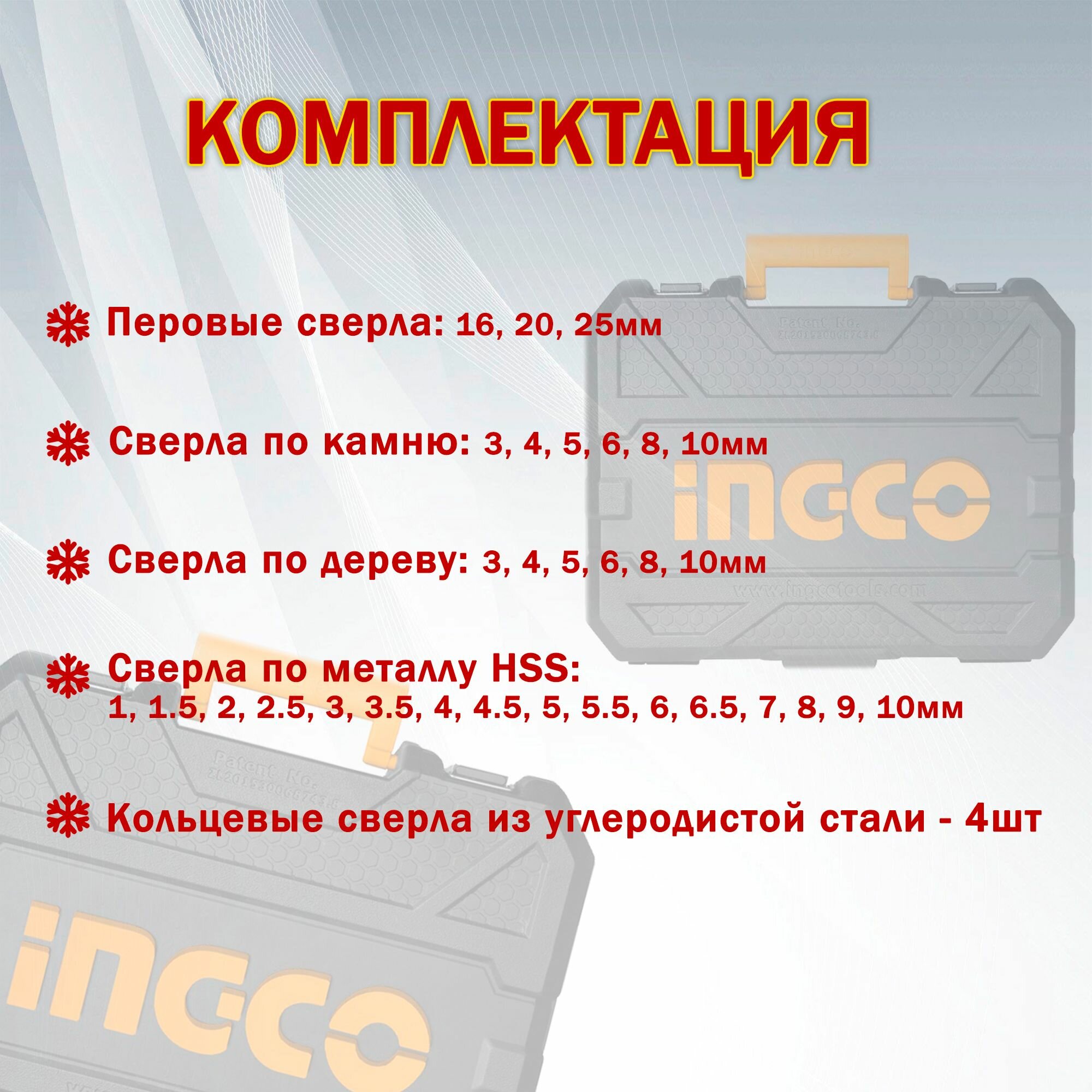 Набор сверл и бит 118 предметов INGCO HKTAC011182 INDUSTRIAL