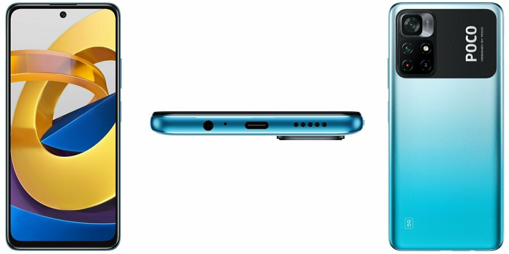 Смартфон POCO M4 Pro 5G 4Гб 64Гб Cool Blue 6.6", IPS, 2400*1080, 2*2.4+6*2.0ГГц, 50+8Мп, 16Мп, 5G, NFC, 5000мАч, And 11