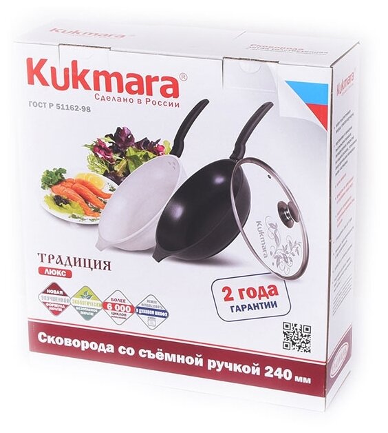 Сковорода Kukmara "Традиция" с крышкой и съемной ручкой с266а, 26см