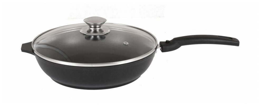 Сковорода алюминиевая литая с апп d26 со Стеклянной крышкой, Сьемн.руч., h=6 С266а