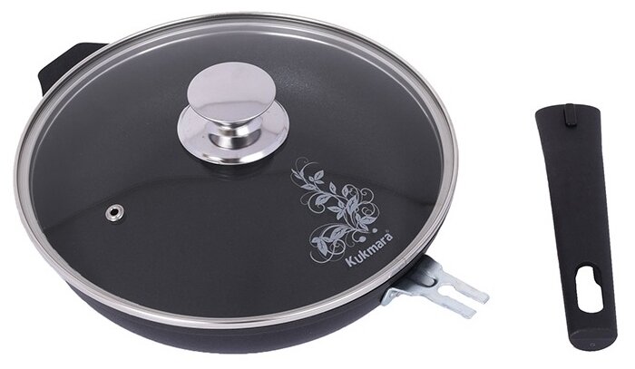 Сковорода KUKMARA литая 22 см со съёмной ручкой и стеклянной крышкой