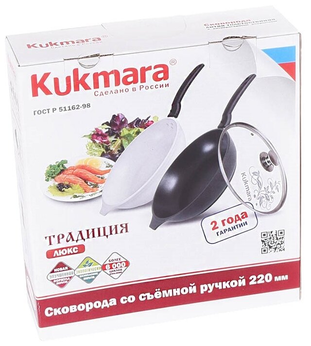 Цена для г. Курчатов. Сковорода "Kukmara" изготовлена из литого алюминия и покрыта высококачественным антипригарным покрытием на водной основе, усиленным сверхпрочными минеральными частицами. Инновационное антипригарное покрытие разработано в соответствии с высокими европейскими стандартами безопасности и экологии. В состав покрытия входят частицы каменной породы, которые обеспечивают исключительную прочность и твердость покрытия. Магазины в городе Курчатов смотрите ниже