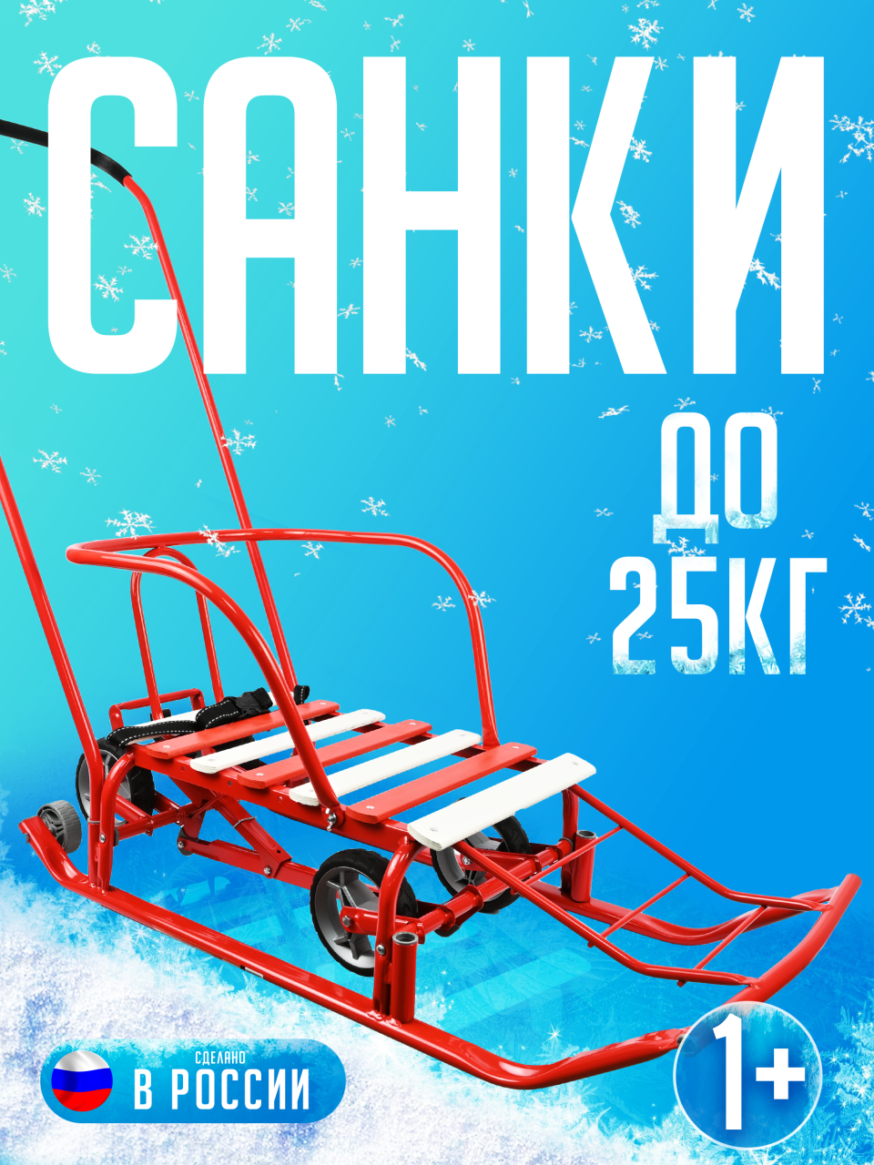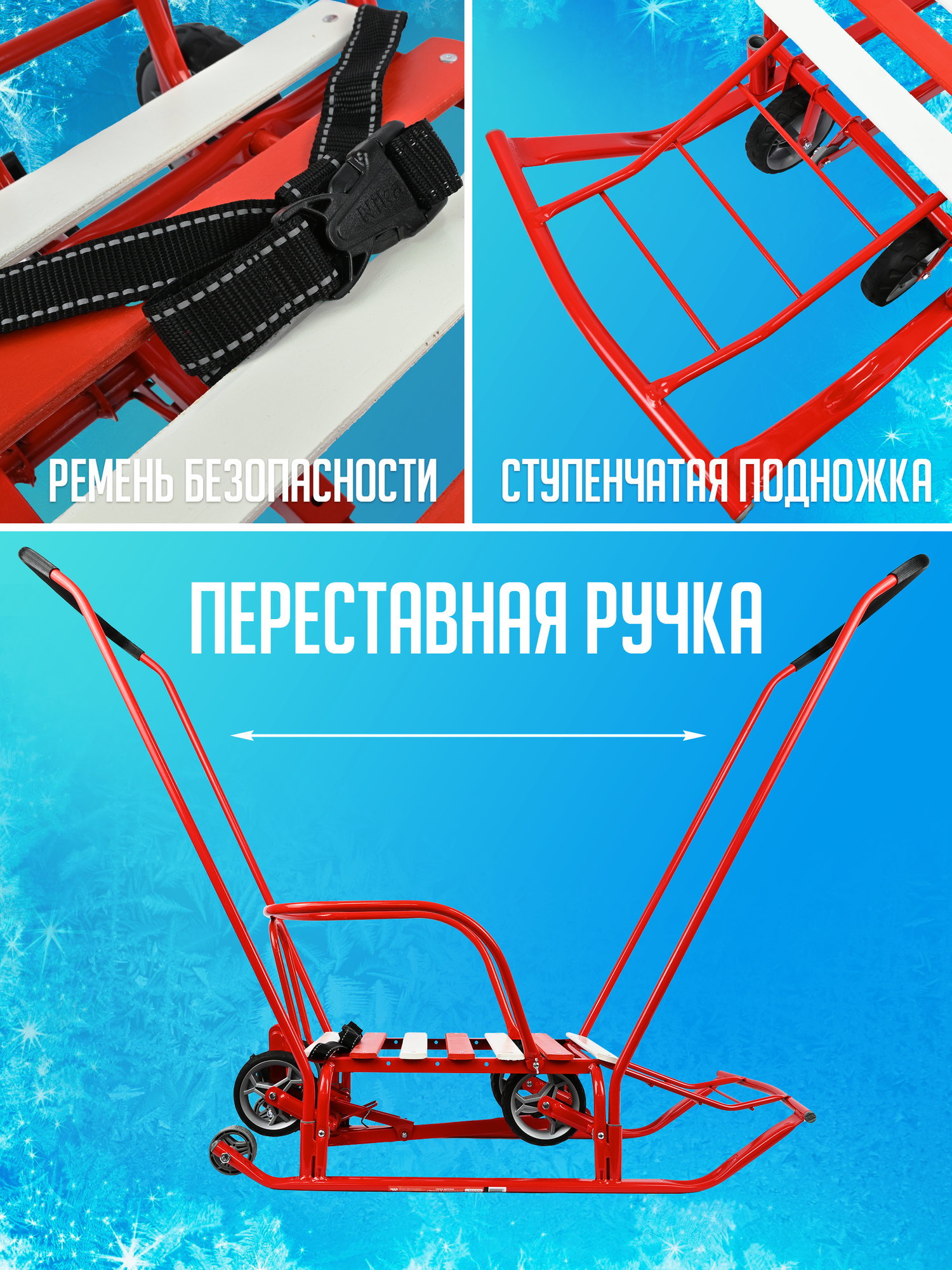 Санки детские с колесами "Тимка 5" универсал, цвет красный