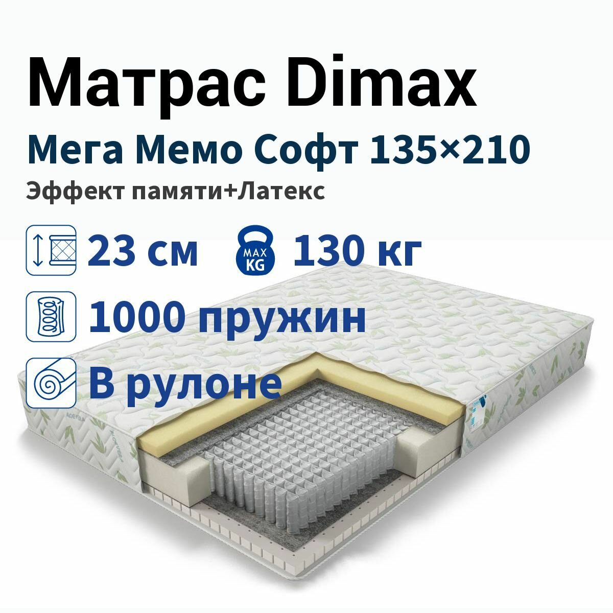 Матрас Dimax Мега Мемо Софт 140х190, стандартный
