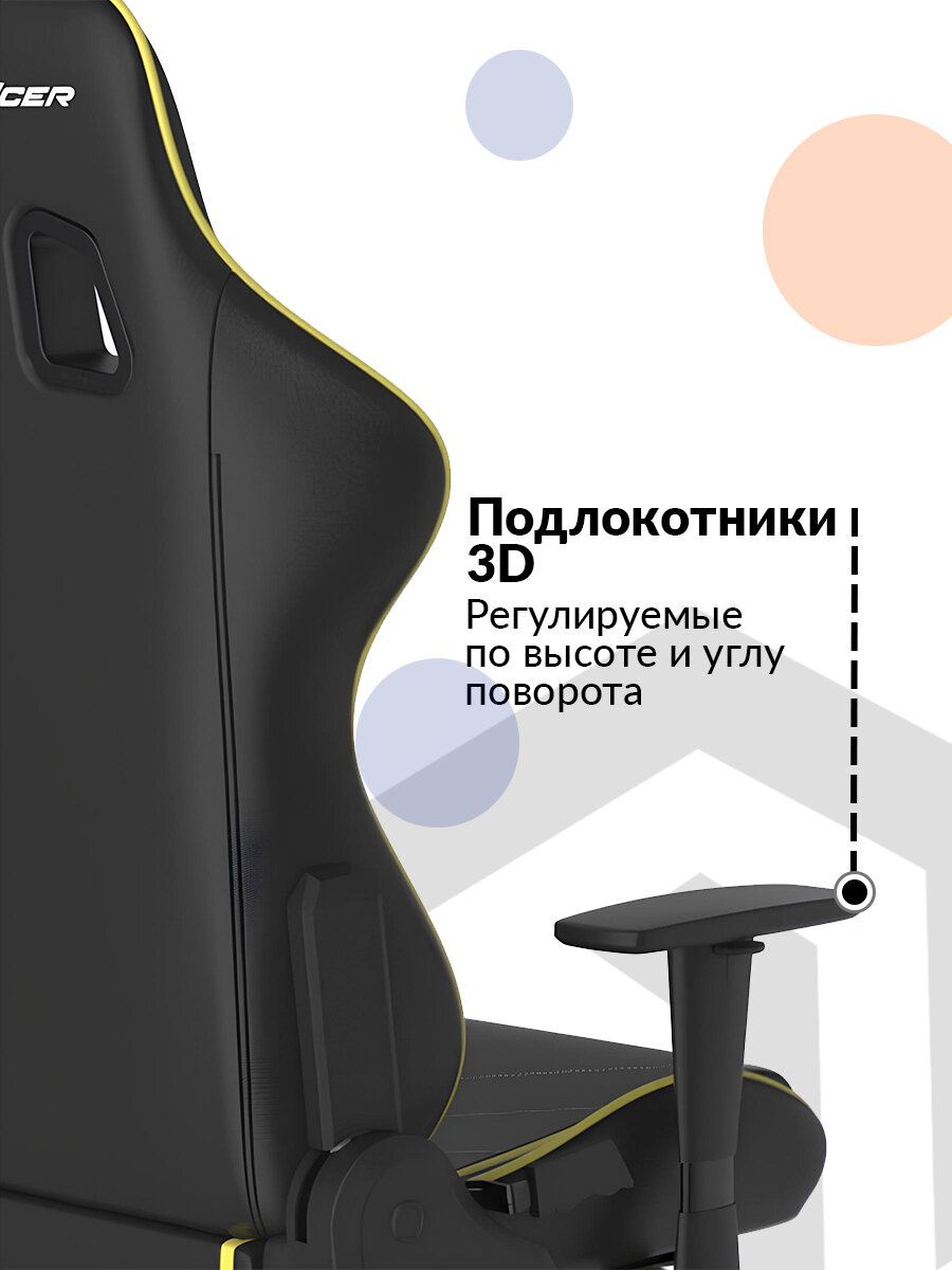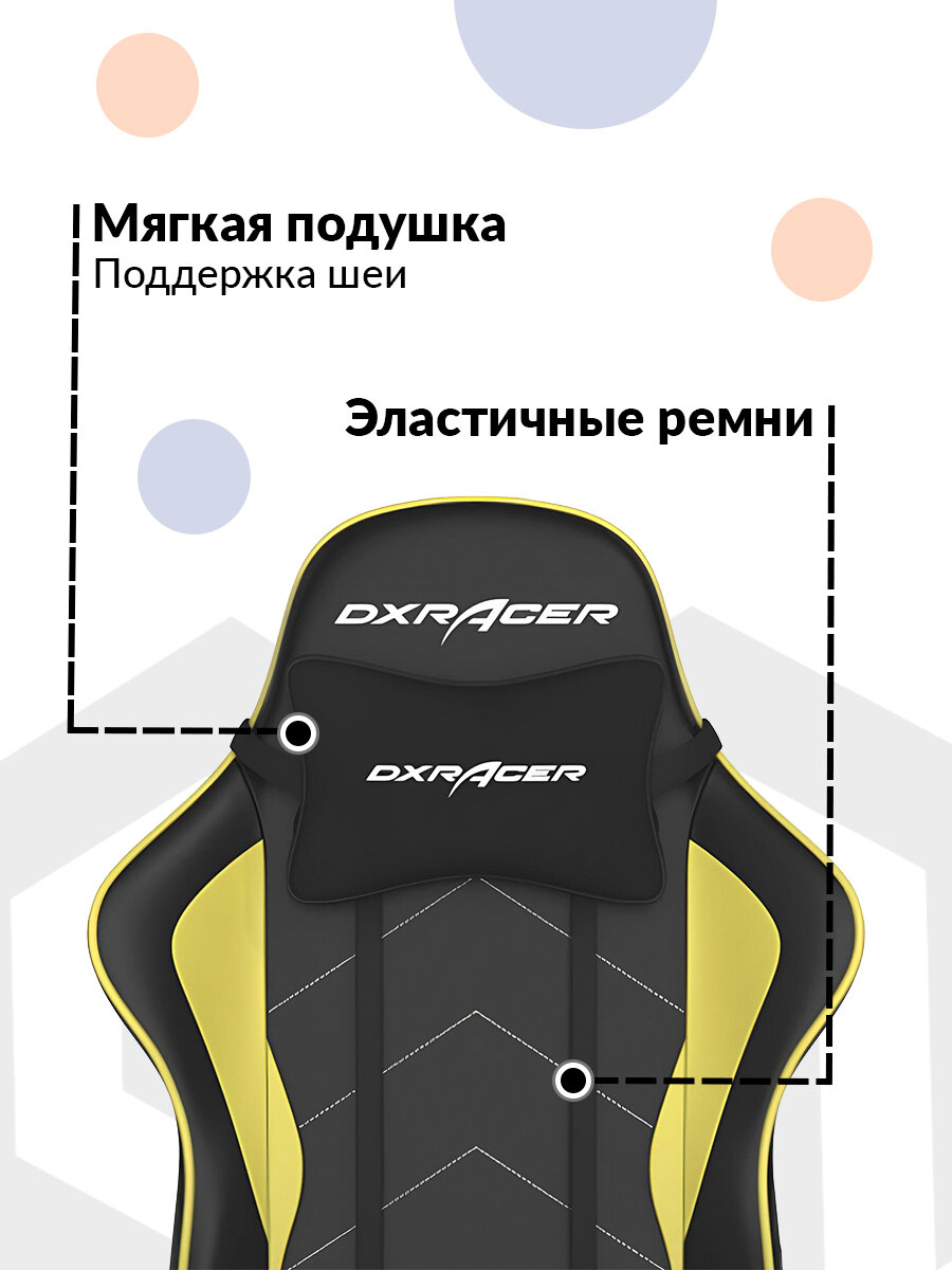 Компьютерное кресло DXRacer OH/FE08/NY черный/желтый / Эргономичное компьютерное кресло в спортивном дизайне.