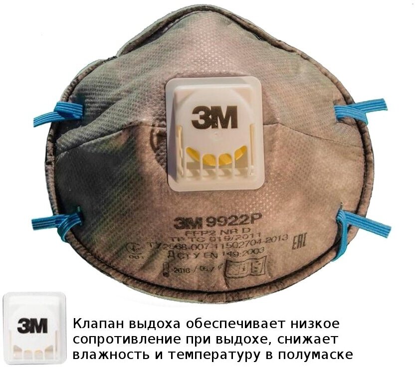 Респиратор 3М™ 9922Р / FFP2 с клапаном выдоха, 1 шт.