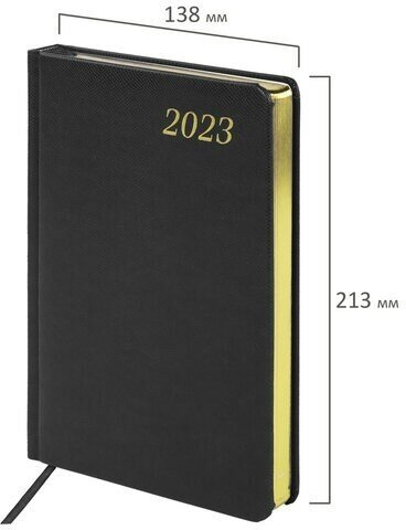 Ежедневник-планер (планинг) / записная книжка / блокнот датированный на 2023 год формата А5 138x213 мм Brauberg Iguana, под кожу, черный
