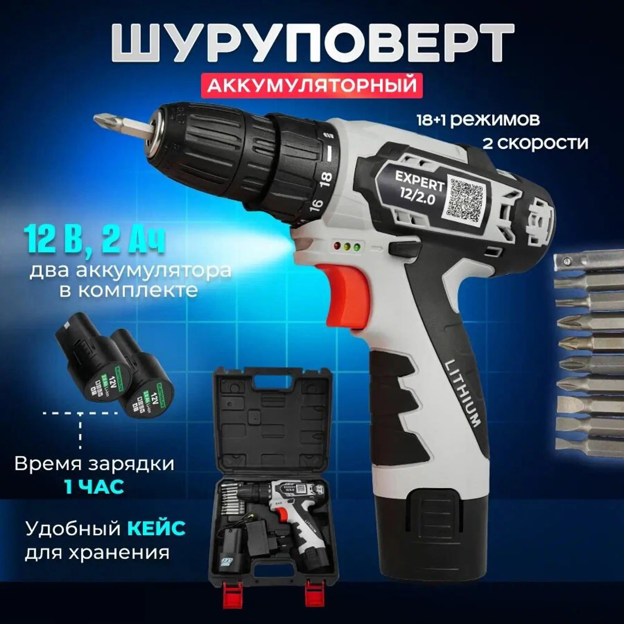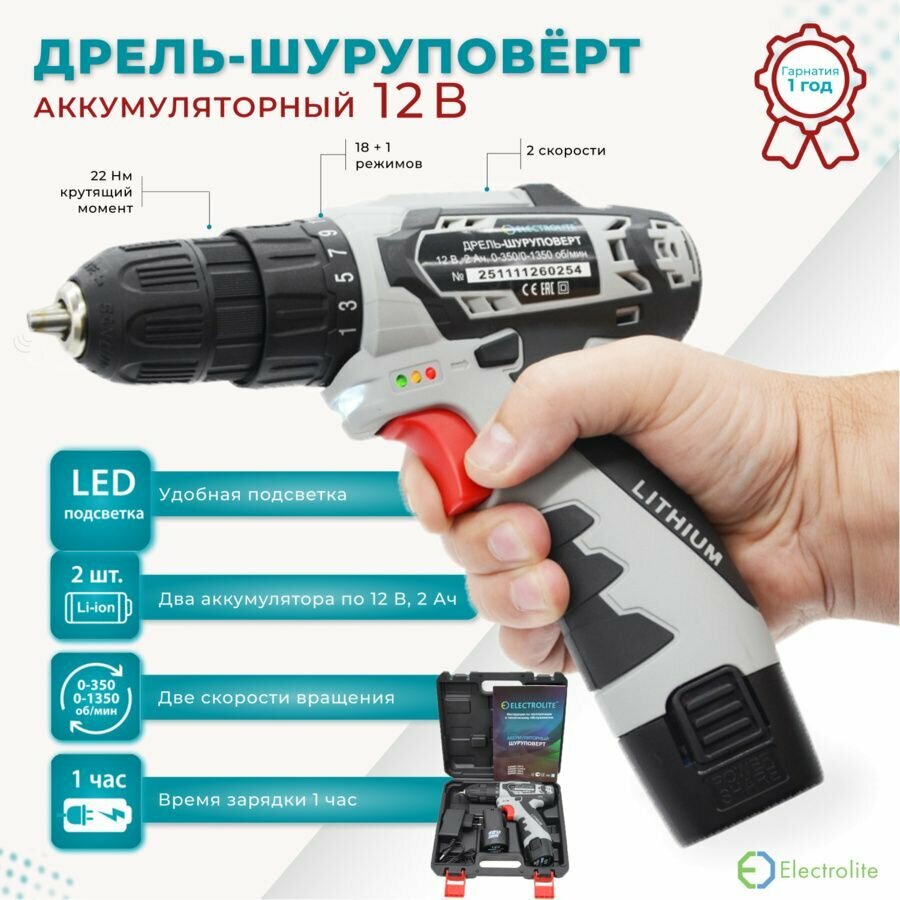 Аккумуляторная дрель-шуруповерт Electrolite EXPERT 12/2.0 22 Нм, 2 Ач, кейс, 2 акб