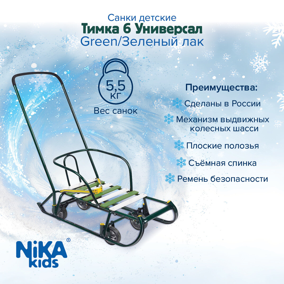 Санки Ника детям "Тимка-6 Универсал", цвет зеленый лак, с колесами, ремень безопасности (Т6У/З2)