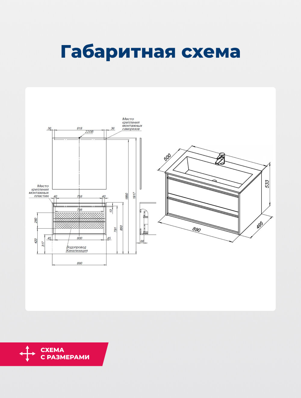 - Расположение раковины