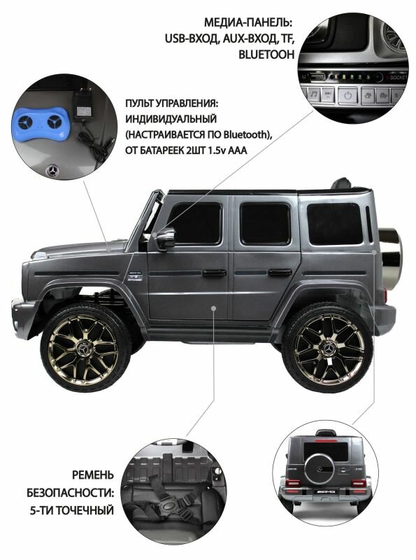 RiverToys Детский электромобиль Mercedes-Benz G63 (T999TT) серый глянец