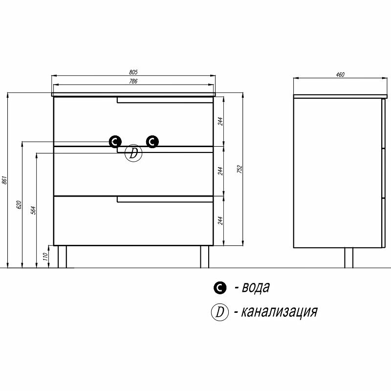 ZRU9302835 Victoria Nord ice edition модуль для раковины 80 см 3-я выдвижными ящиками