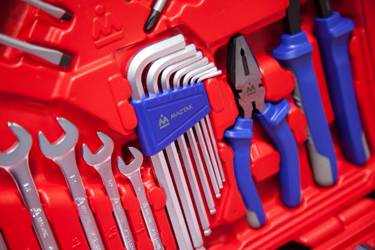 Цена для г. Курчатов. Оптимальный по составу и функциональным возможностям набор инструментов марки мастак. Ключи и головки различной конфигурации и типов, насадки различного профиля, всевозможные принадлежности для удобной работы с различными узлами автомобиля и прочими механизмами; отвёртки, шарнирно-губцевые инструменты – всё, что удовлетворит потребности самого требовательного мастера. Магазины в городе Курчатов смотрите ниже