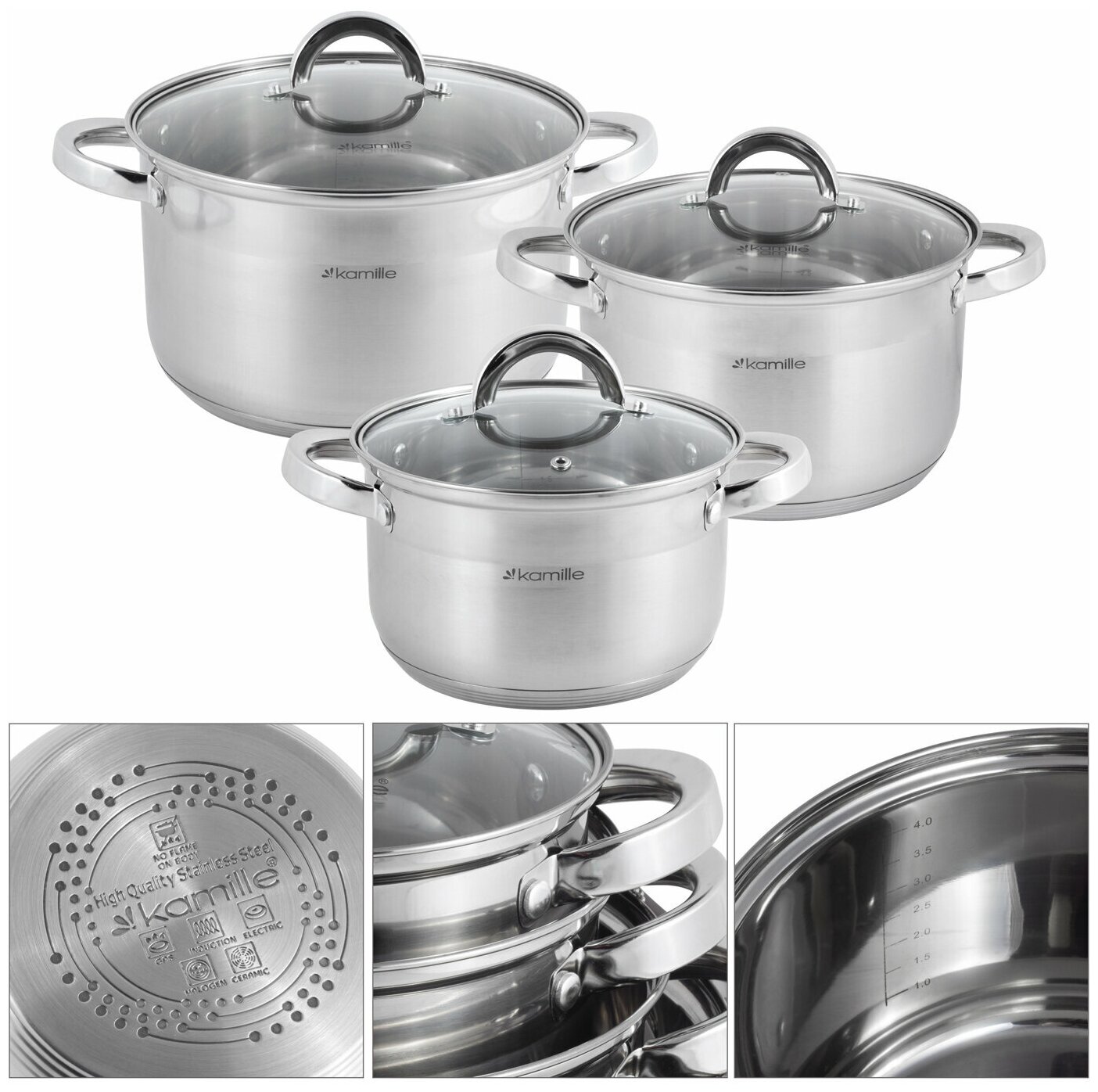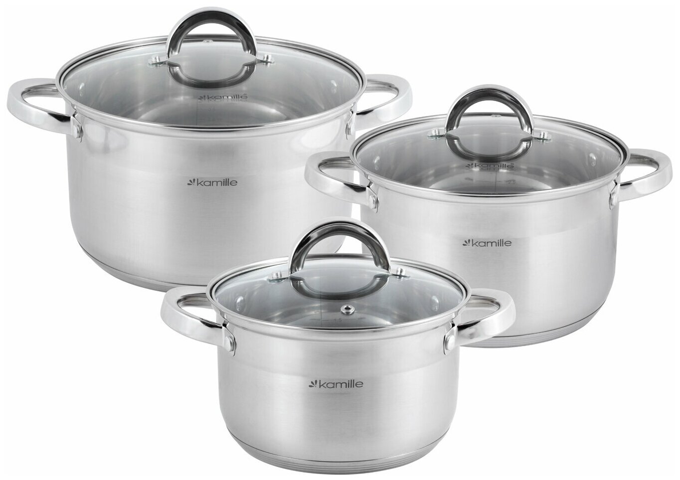 Набор кастрюль Kamille из нержавеющей стали 6 предметов (4.0л, 5.5л, 7.0л)