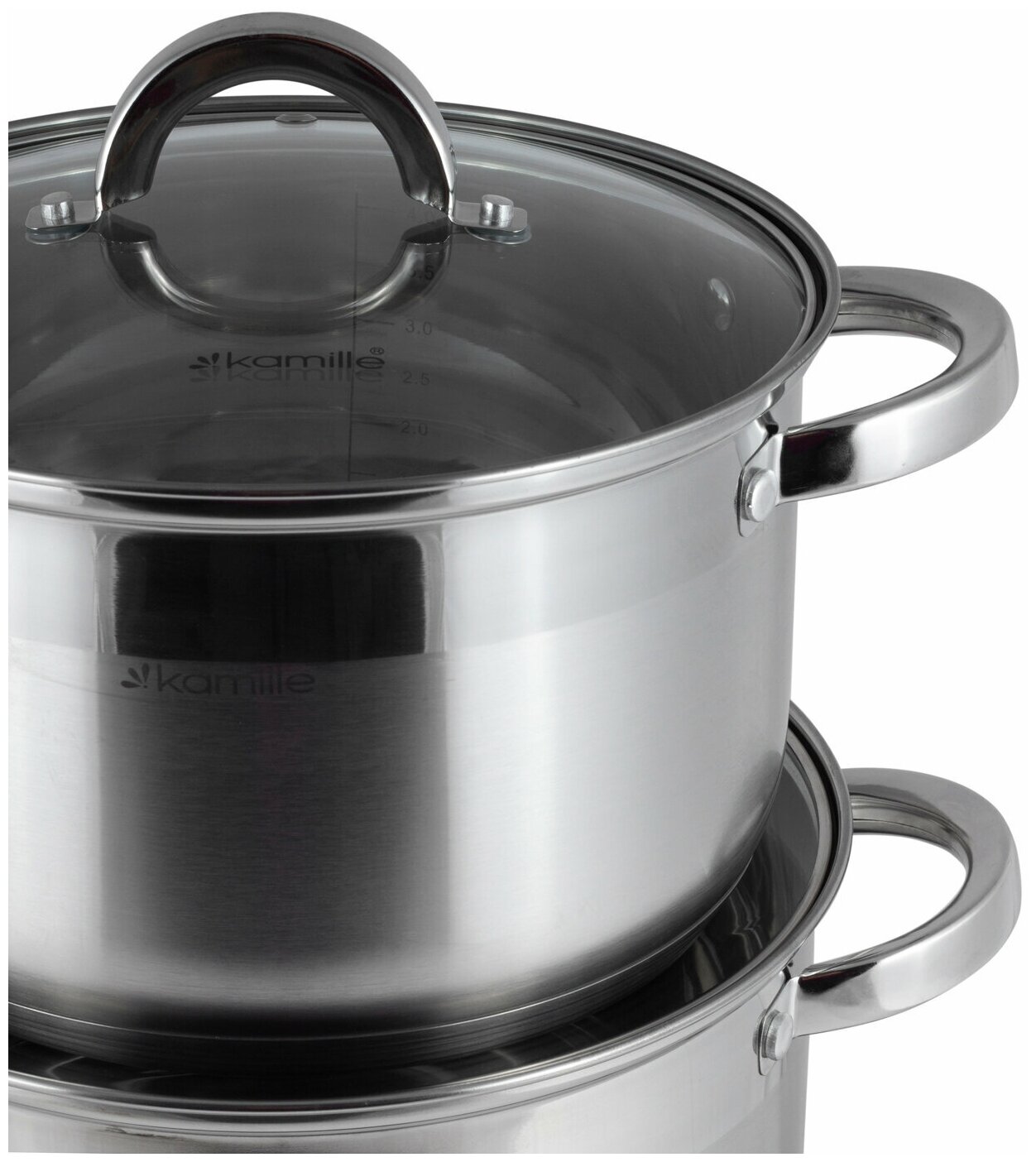 Набор кастрюль 6 предметов из нержавеющей стали Kamille KM-5630S (4,5 л; 5,8 л; 7,8 л)