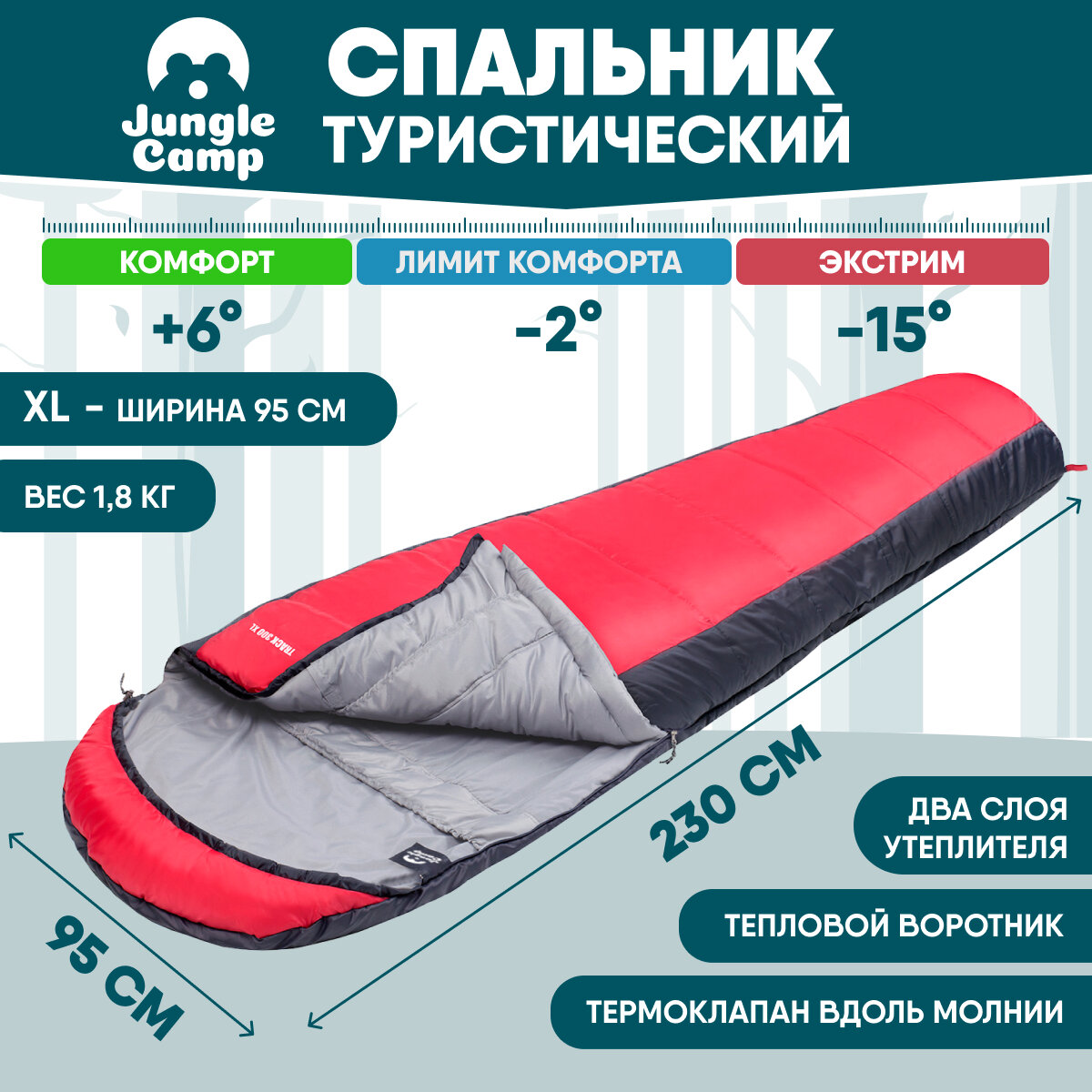 Jungle Camp Спальный мешок Jungle Camp Track 300, трехсезонный, левая молния, цвет: серый, красный спальный мешок в Курчатов