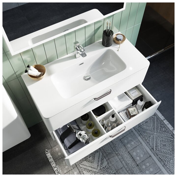 Тумба с умывальником подвесная с ящиком, белая, 100 см,IDDIS Esper ESP10W0i95K