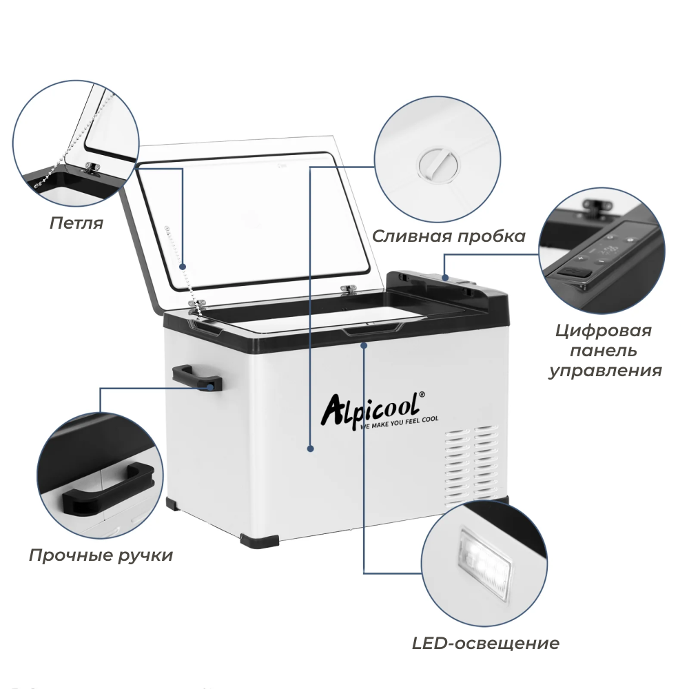 Автомобильный холодильник компрессорный (автохолодильник) ALPICOOL C40 (40 литров)