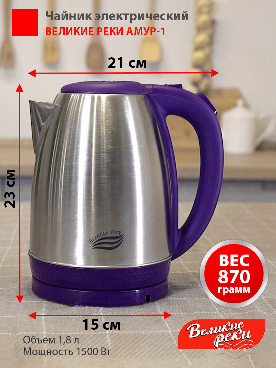 Чайник электрический Великие реки Амур-1 фиолетовый, 1,8л, нержавейка Амур-1 фиолетовый .