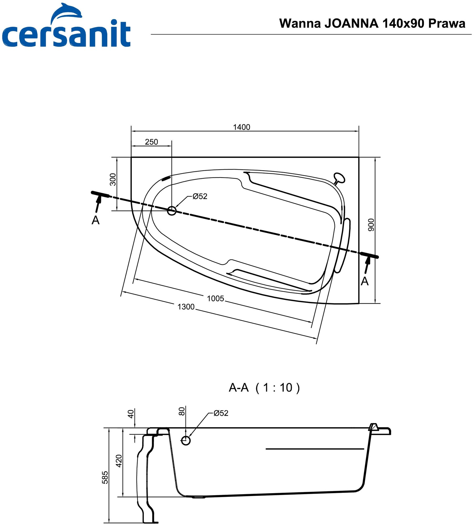 Ванна асимметричная Cersanit JOANNA NEW 140x90 правая белый, 63335