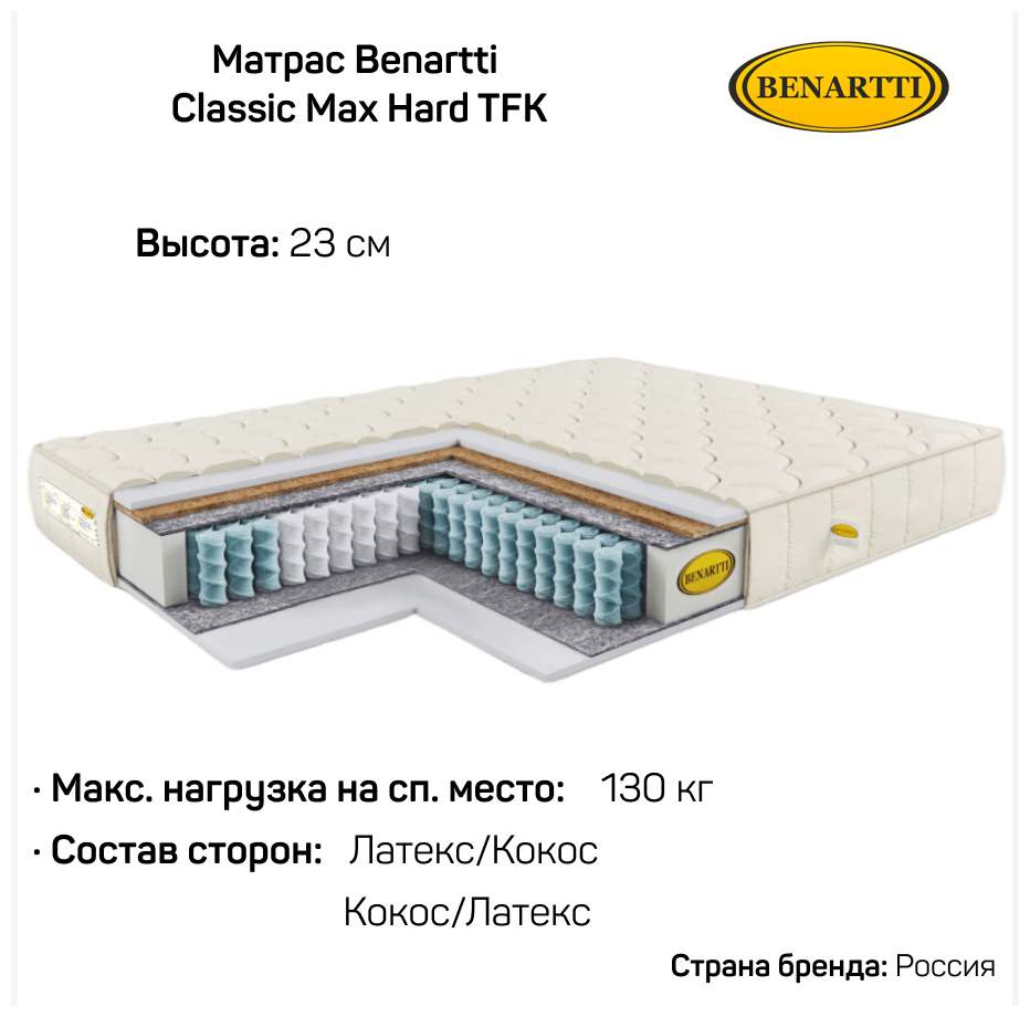 Матрас Benartti Classic Max Hard TFK, Размер 210х185 см