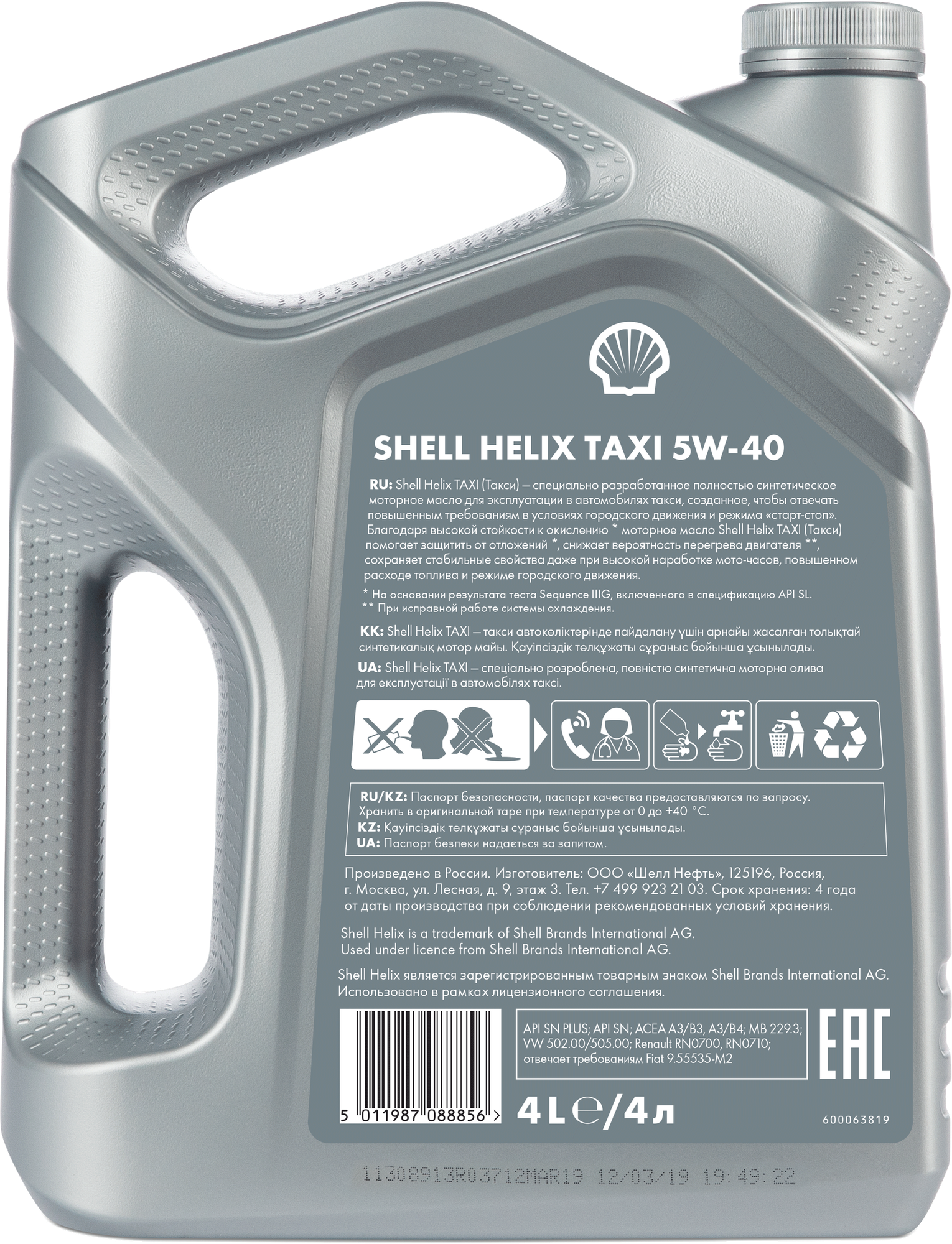 Масло моторное синтетическое Shell Helix Taxi 5W-40 (4л) SHL-5W40-T-4L