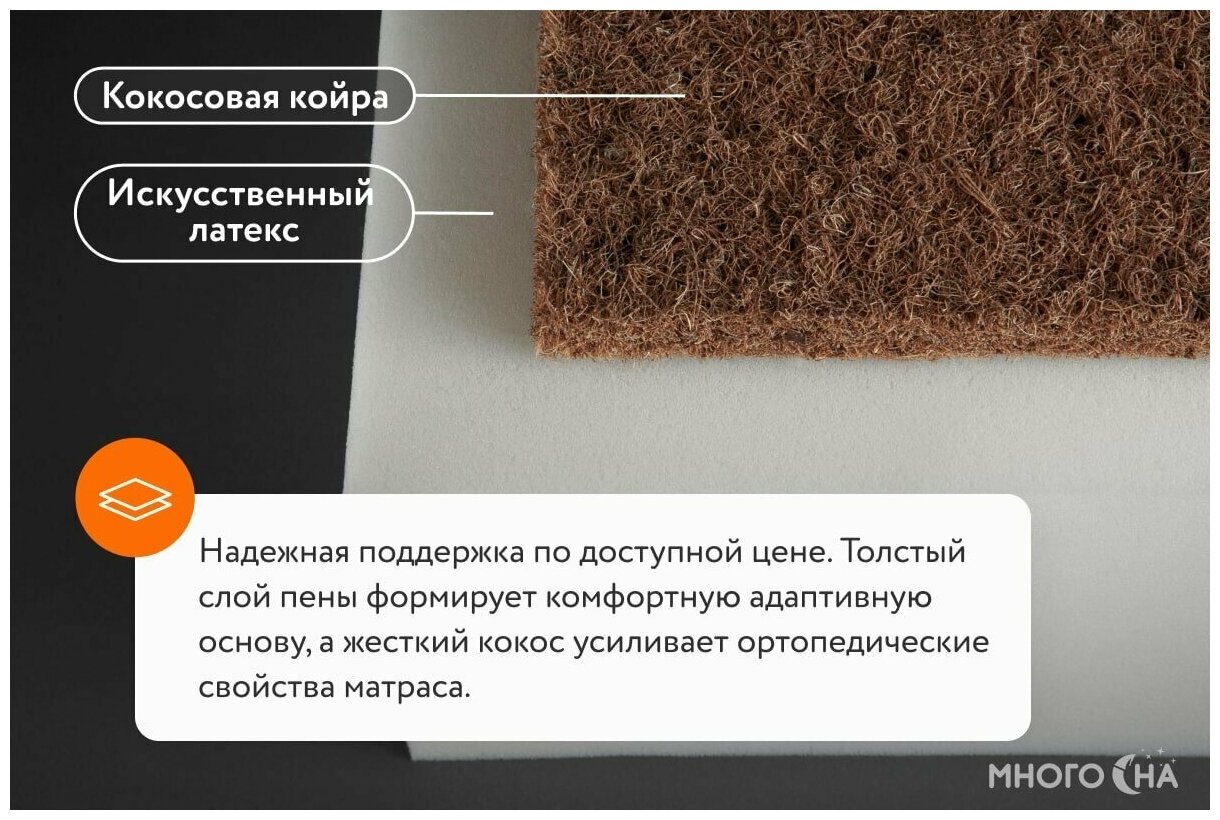 Цена для г. Курчатов. Матрас Benartti Mix Hard (Бенаррти Микс Хард) относится к беспружинным моделям с небольшой толщиной 10 см. Комбинирование двух материалов образует две стороны со средней и умеренной жесткостью. Безопасный матрас выдерживает нагрузку до 100 кг и подходит подросткам, людям, ведущим активный образ жизни. Умный матрас имеет преимущество в виде отсутствия металлических изнашиваемых элементов в конструкции. Использование современных материалов делает комфортный сон доступнее. Магазины в городе Курчатов смотрите ниже