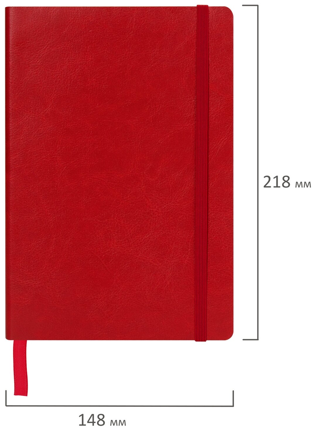 Блокнот Brauberg А5 (148*218 мм), "Metropolis Ultra", под кожу, резинка, 80 листов, красный (111018)